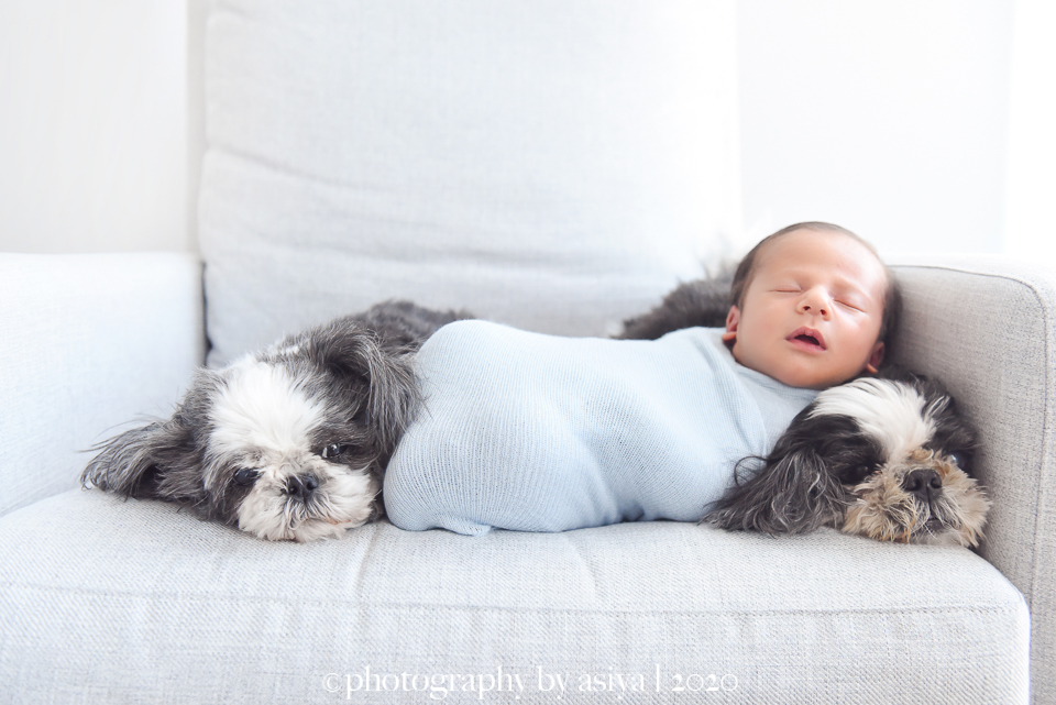 I love photographing newborns especially when they have furry big sibling! This is an older shoot that I just stumbled upon. How sweet are these photos?